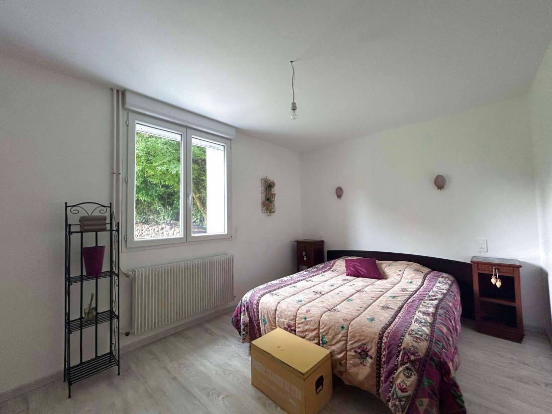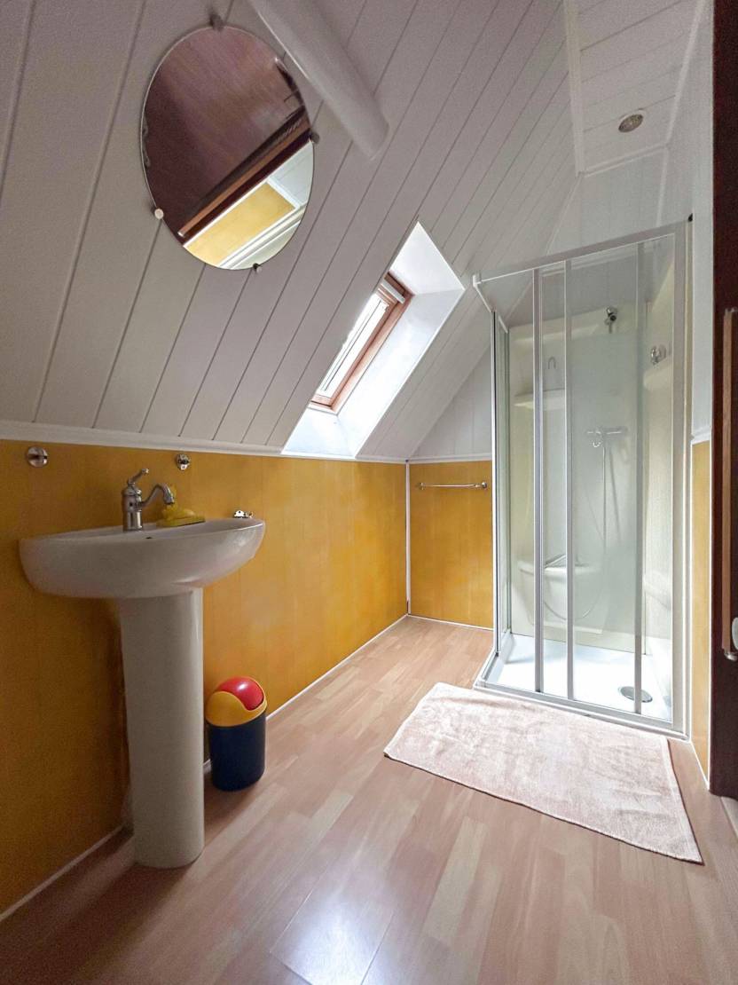 Au premier étage, une grande chambre avec sa salle d'eau, un WC, une chambre et un grenier de 53m2 aménageable.