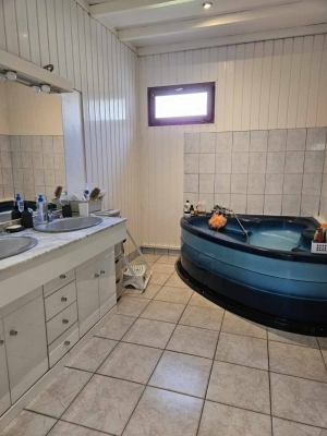 Un second logement en duplex, ou quelques travaux seront à prévoir. Séjour ouvert sur une kitchenette, à l'étage : une chambre ouverte sur la salle de douches avec wc.