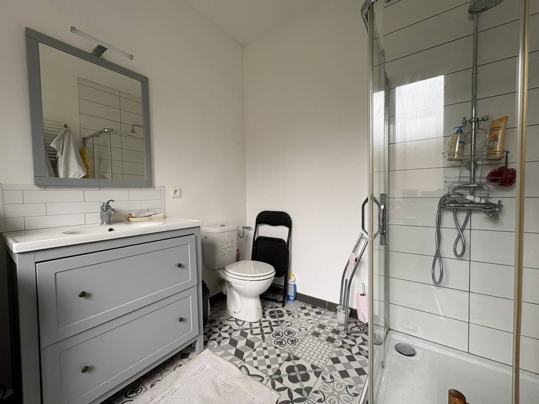 Au rez-de-chaussée : Une chambre avec salle d’eau et WC.