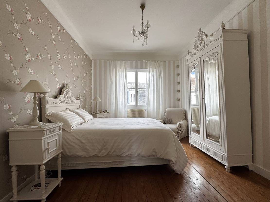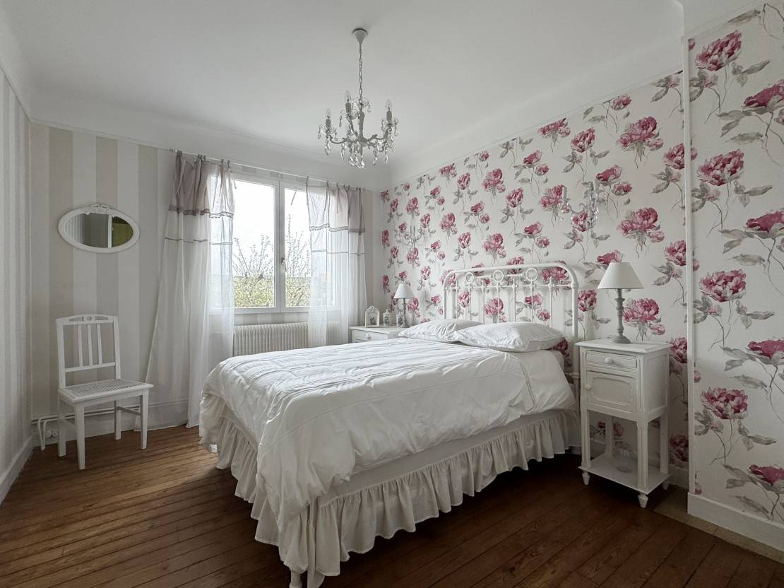 À l’étage, un palier dessert cinq chambres, dont une équipée de son propre WC, offrant de nombreuses possibilités d’aménagement pour une grande famille ou un projet de résidence secondaire.