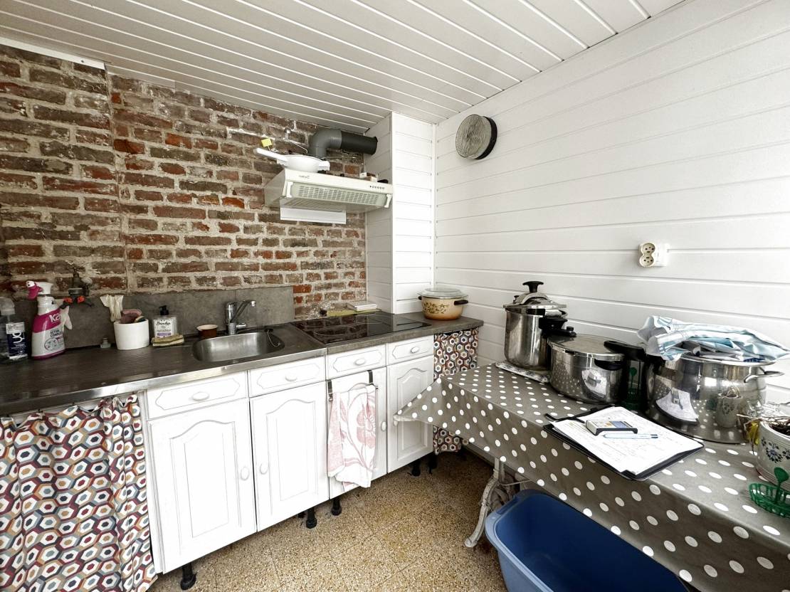 Vous serez séduit par une belle distribution des espaces : une entrée, un séjour ouvert sur la cuisine, ainsi qu’une véranda donnant directement sur la cour. Le rez-de-chaussée comprend également une salle de douche et un WC indépendant.