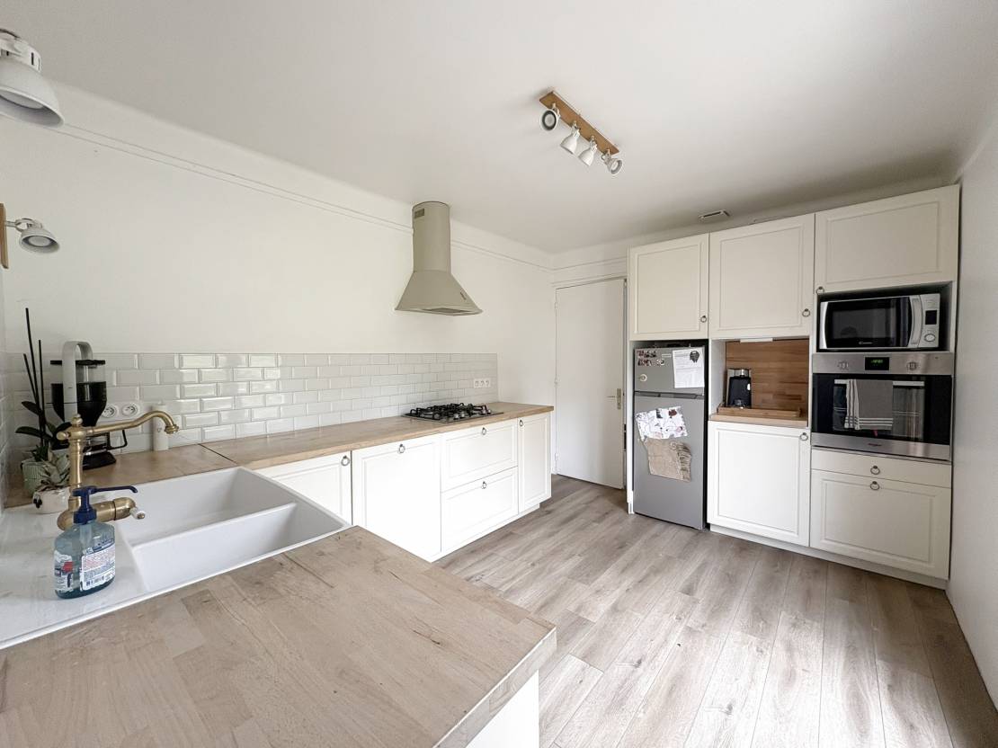 Au rez-de-chaussée vous trouverez une entrée spacieuse, un vaste séjour d’environ 39,49 m2, idéal pour recevoir, une cuisine équipée, un WC indépendant, ainsi que deux grandes chambres (14,32 m2 et 14,37 m2).