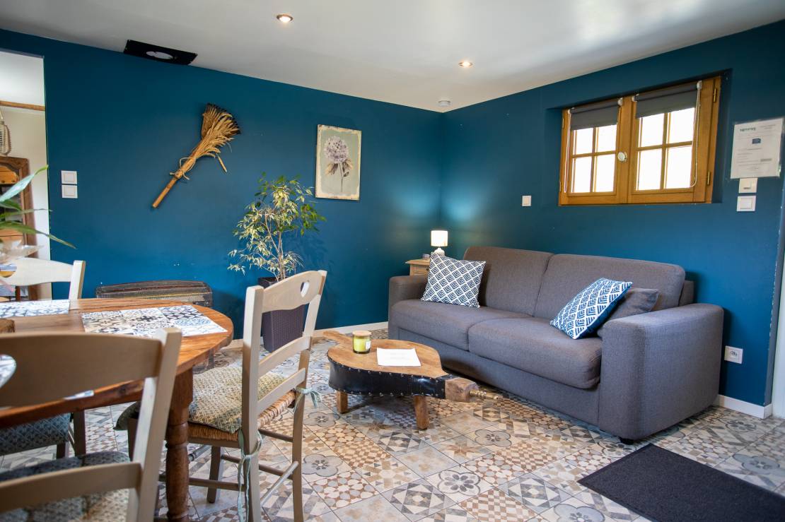 Les gîtes : Chaque gîte dispose d’un espace de vie avec salon, salle à manger et cuisine, d’une salle de bains et d’une chambre, offrant confort et indépendance.