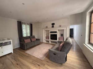 Au rez-de-chaussée, vous trouverez également une salle de bains moderne avec douche à l’italienne, baignoire, double vasque et espace buanderie, un WC séparé ainsi qu’une chambre.