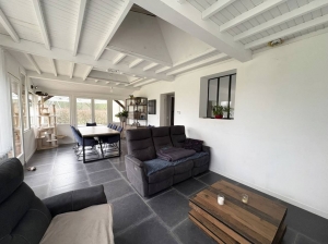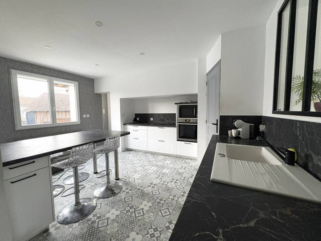 Cette belle longère se compose d’une entrée donnant, d’un côté, sur la salle à manger et, de l’autre, sur une cuisine entièrement équipée.