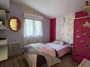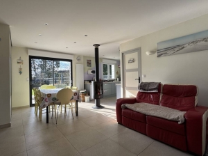 Confort assuré grâce au double vitrage PVC, aux volets roulants électriques, ainsi qu’au chauffage combinant poêle à bois et radiateurs électriques.
