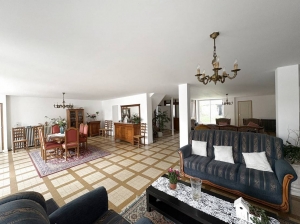 Vous découvrirez un vaste espace de vie d’environ 94 m2, comprenant un séjour ouvert sur la salle à manger équipée d’un poêle à granulés, ainsi qu’une cuisine entièrement équipée.