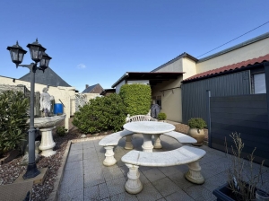 À l’extérieur, vous bénéficierez d’un garage d’environ 22 m2 avec porte motorisée, d’une dépendance de 19 m2 avec point d’eau ainsi que d’autres espaces de stockage. Une terrasse complète l’ensemble.