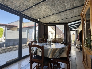 Au rez-de-chaussée, vous découvrirez une véranda chauffée apportant luminosité et confort toute l’année, une cuisine aménagée et semi-équipée, un séjour d’environ 30 m2, une chambre avec dressing, une salle de douche ainsi qu’un WC indépendant.